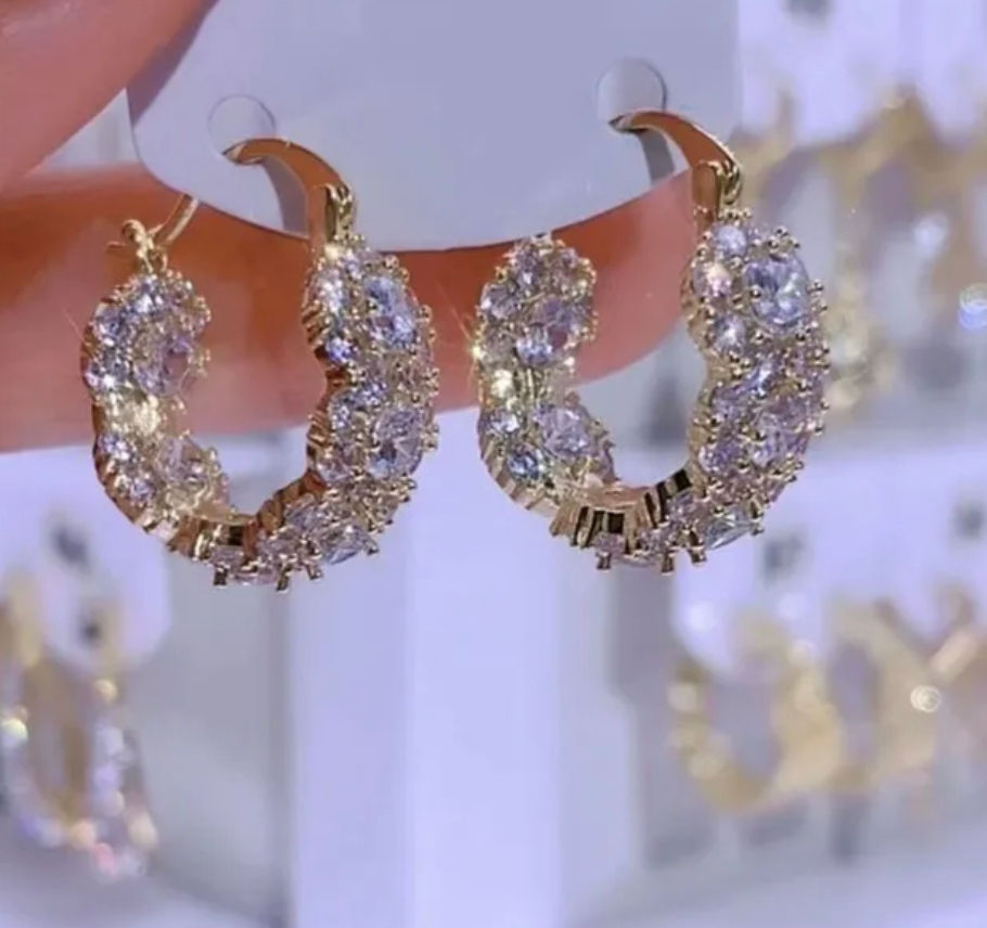 Pentagram Heart Shape Stainless Steel Zircon 18K Gold Plated Drop Earrings Ear S