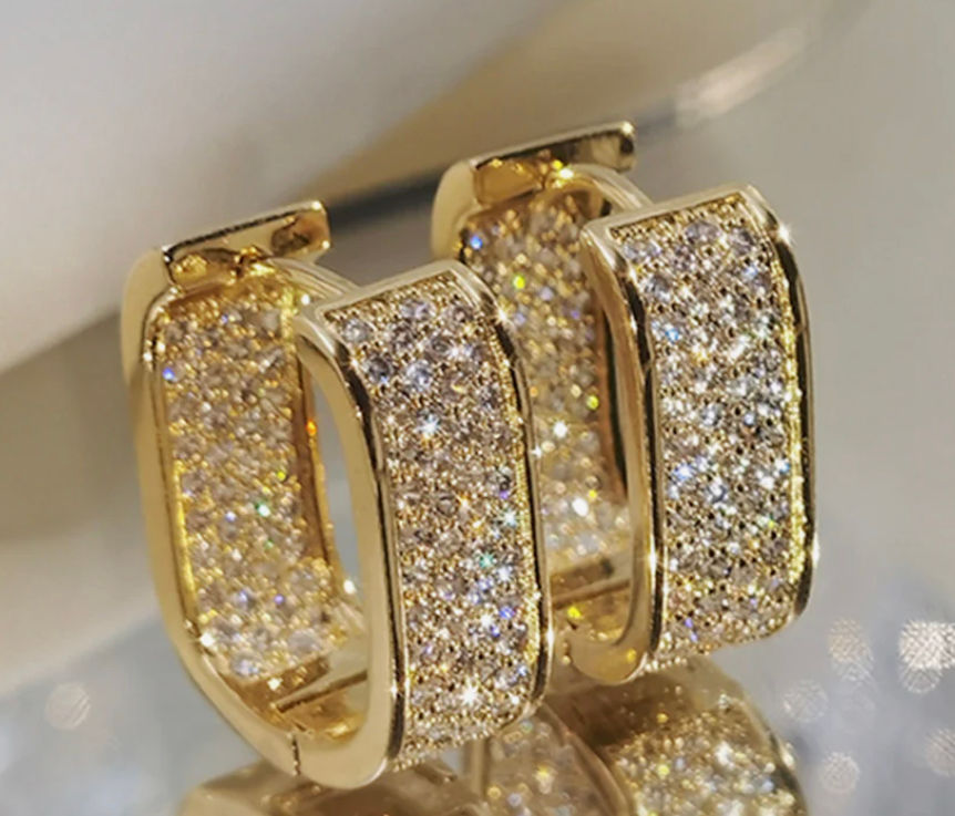 French Style Geometric Plating Style Steel Zircon 18K Gokd Plated